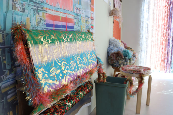 わたしたちが光織物さんのステ耳という廃材に一目惚れして始まった一連の企画は、ストーリーや意味を大切にしながら言葉を選んだり構成を考えました。 廃材だったものに価値を与えることはとても素晴らしいことですが 社会にとっていい取り組みだからとか正しいことだからというような堅苦しいものにはしたくありませんでした。 ステ耳は単純に綺麗で可愛い。そこから生まれたチェアクッションもぬいぐるみのように愛おしい。 そんな素直な気持ち、正直な感想をわたしたちが共有していたことが展示の構成や内容に表れていたと思います。